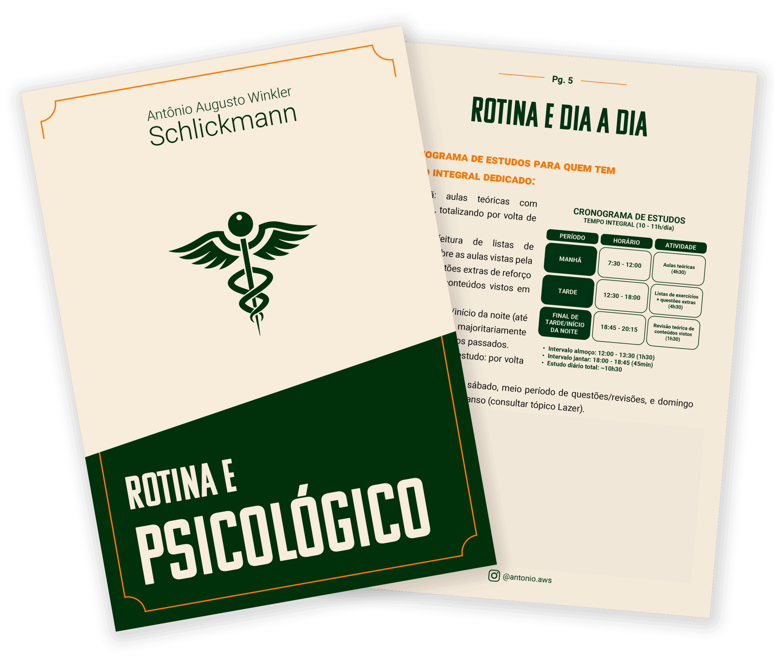 Trago aqui o mais importante pilar da aprovação de maneira didática e que te permite aplicar no seu dia a dia, desde o sono e atividades físicas à técnicas para lidar com a ansiedade.