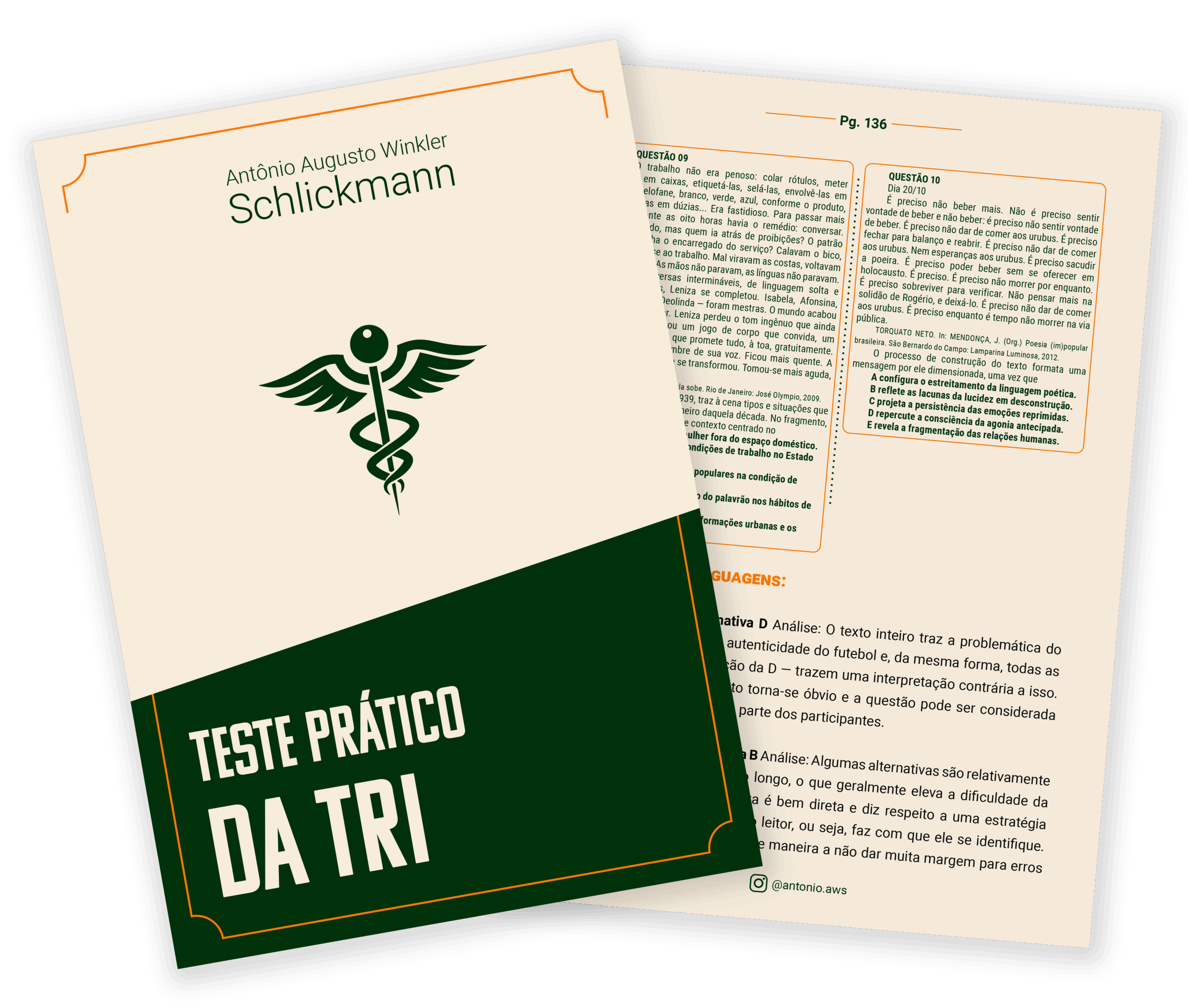 Nesse sentido, contar com o apoio de um material que compila vários aspectos da preparação, incluindo orientações relacionadas à TRI, certamente pode ser um baita diferencial para te permitir alcançar resultados tão impressionantes como o do Antônio!